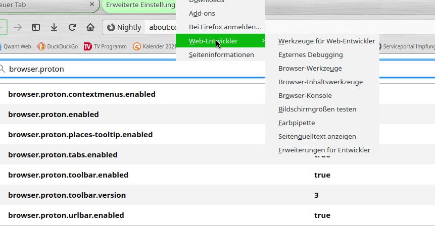 Damit ergeben sich nach aktuellem Stand die folgenden Optionen zur vollständigen Aktivierung aller Baustellen im Rahmen von Proton. Voraussetzung hierfür ist die Verwendung einer Nightly-Version von Firefox.