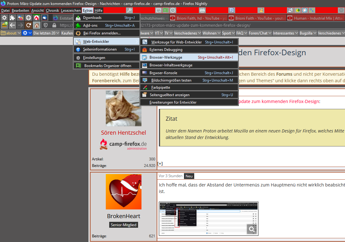 Wer dennoch Feedback an Mozilla geben möchte, hat dazu mehrere Möglichkeiten wie den Raum #Proton auf chat.mozilla.org oder ein Thema im offiziellen Nightly-Forum von Mozilla zu eröffnen. In beiden Fällen erfolgt die Kommunikation natürlich in englischer Sprache.