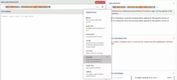 Man muss zuvor links den „Flavor“ auf ECMAScript stellen. Standardmäßig ist PHP ausgewählt, was in deinem Fall nicht relevant ist. Das wird nicht in der URL abgebildet, daher war das über meinen Link nicht direkt vorausgewählt.