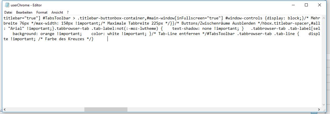 Meine Userchrome.css sieht folgendermaßen aus:
