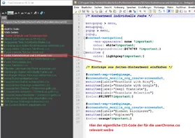 ... und deshalb gibt es ja die Möglichkeit die CSS-Codes (per @import Befehl in der userChrome.css) auszulagern.