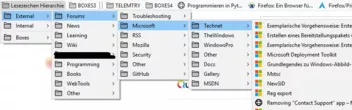 mein bisherige Struktur ist noch ausbaufähig. Ich suche nach idealen Kategorien, wie ich meine Lesezeichen am besten unterteilen kann. Meine alte Hierarchie ist noch eine reine Baustelle. Boxes enstprechen dann Links die keiner Kategorie angehören und irgendwann mal den entsprechenden Kategorie zugeorndet werden sollen. (s. Bild)