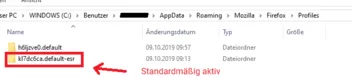 ich stelle automatisiert den Firefox Browser in der ESR Version bereit. Bei der Installation des Browser, werden automatisch zwei separate Profile erstellt. Zusätzlich kopiere ich eine vorgefertigte policies.json in den <INSTALL>/distribution Ordner. Das Ding ist aber, dass die Einstellungen nur in dem normalen Profil und eben nicht im ESR Profil geladen werden. Kann ich das denn für alle austeilen? (s. Bild).