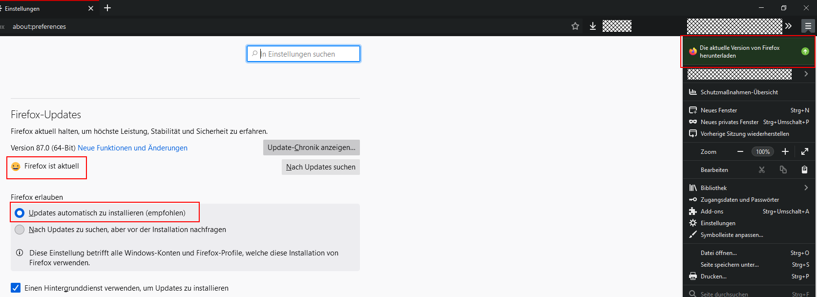 Ich bekomme, sobald ich den Firefox starte, den Hinweis, dass ich die aktuelle Firefox Version herunterladen kann..