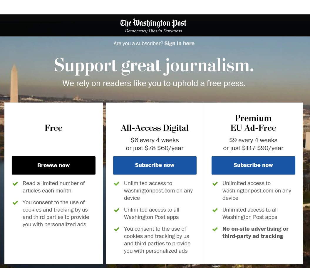 Kann ich ja mal mit der Seite der Washington Post machen. Allerdings habe ich nur eine Erweiterung: Facebook Container.