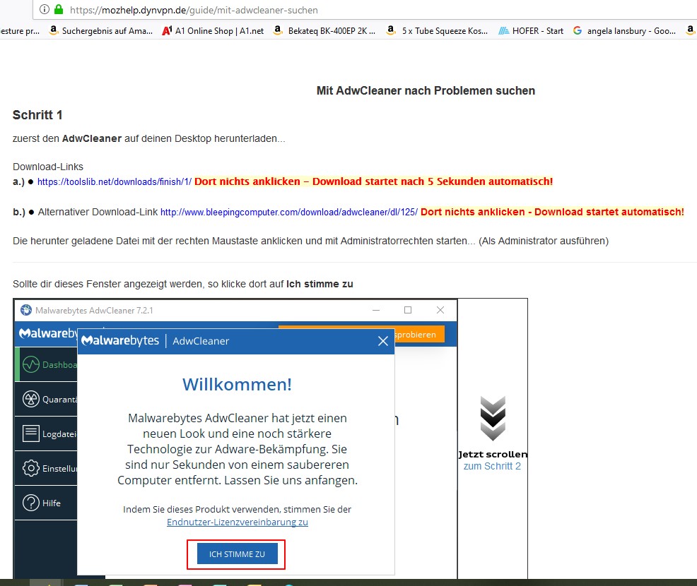 Bitte, da steht "zuerst den AdwCleaner herunteraden", auf der Seite, auf der ich mit dem Link von Beitrag #60 lande!!!!!!!!!!!!!!!!!!!!!!!!!!