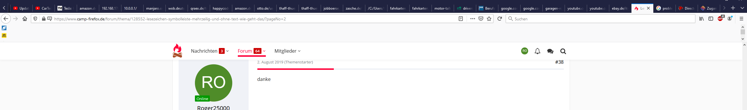 Dazu benutze ich eine userchrome.css mit dem folgenden Code, den ich von der Seite (https://www.windowspower.de/firefox-66-meh…lleiste-update/) habe.