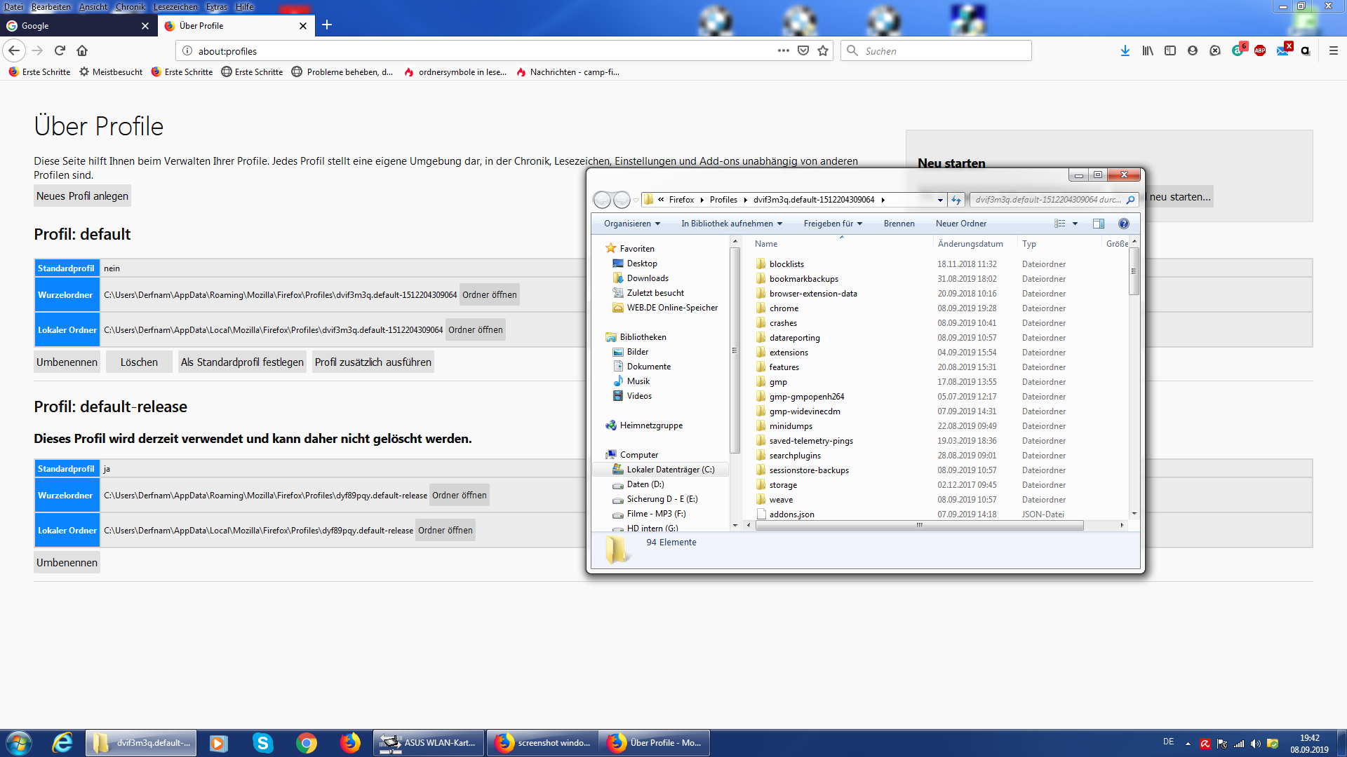 Ich habe den Restart Firefox Button.uc.xul in den Chromeordner kopiert. Aber auch keine änderungen.