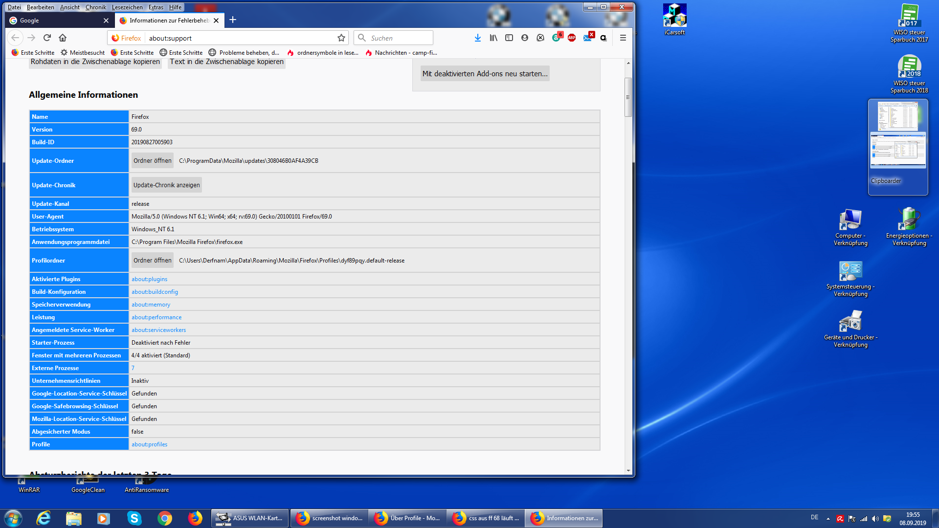 Auf dem Notebook meiner Frau ist Win10. Mit dem Update auf 69.0 das gleiche Problem.
