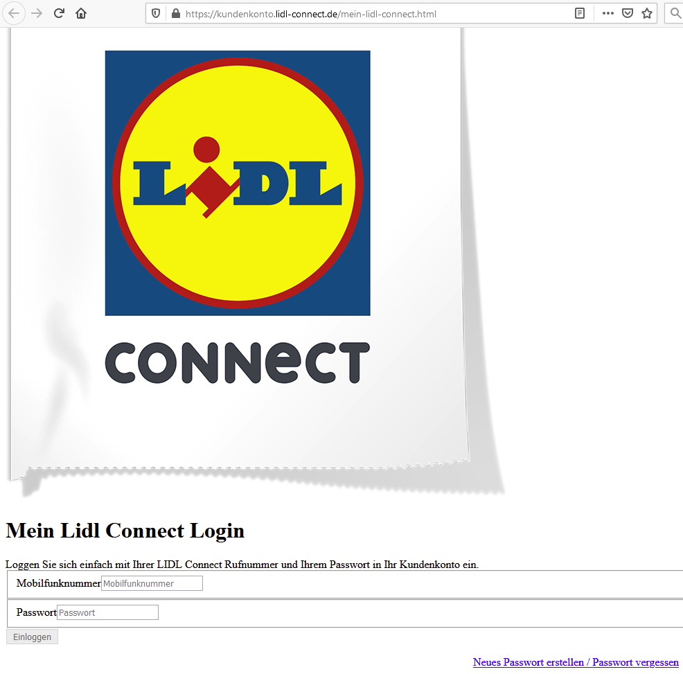 Das gleiche Problem ist übrigens bei mir hier https://kundenkonto.lidl-connect.de/mein-lidl-connect.html, falls das hilft...