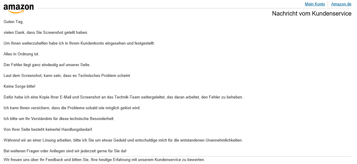 Bin eben nach Hause gekommen, nachdem der PC nun ein paar Stunden aus war, funktioniert wieder alles so, wie es sein soll - Ich hab keine Ahnung, was da losgewesen sein könnte, ich hatte nichts verändert. Vlt. hat Amazon zwischenzeitlich was gemacht, diese E-Mail hab ich vorhin bekommen: