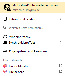 .DeJaVu Vor Boersenfegers Einstellungsanleitung war mein FF seit heute scheinbar etwas schneller, auf jeden Fall nicht mehr teilweise extrem langsam, denn folgende Einstellung war seit heute (keine Ahnung warum) anders: Das Symbol "Firefox-Konto"