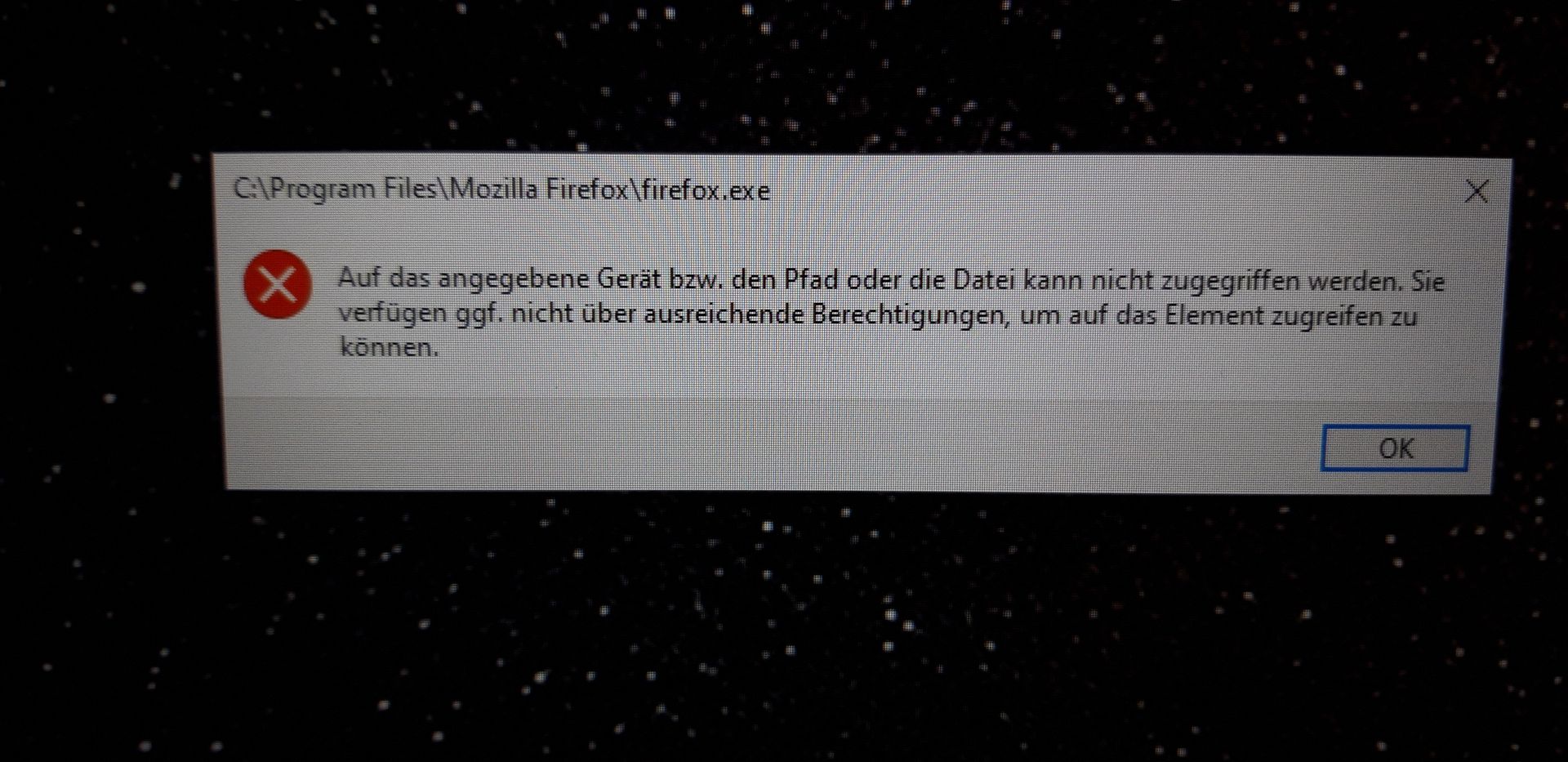 Beim Versuch, Firefox zu öffnen, erscheint die Meldung wie im Anhang.
