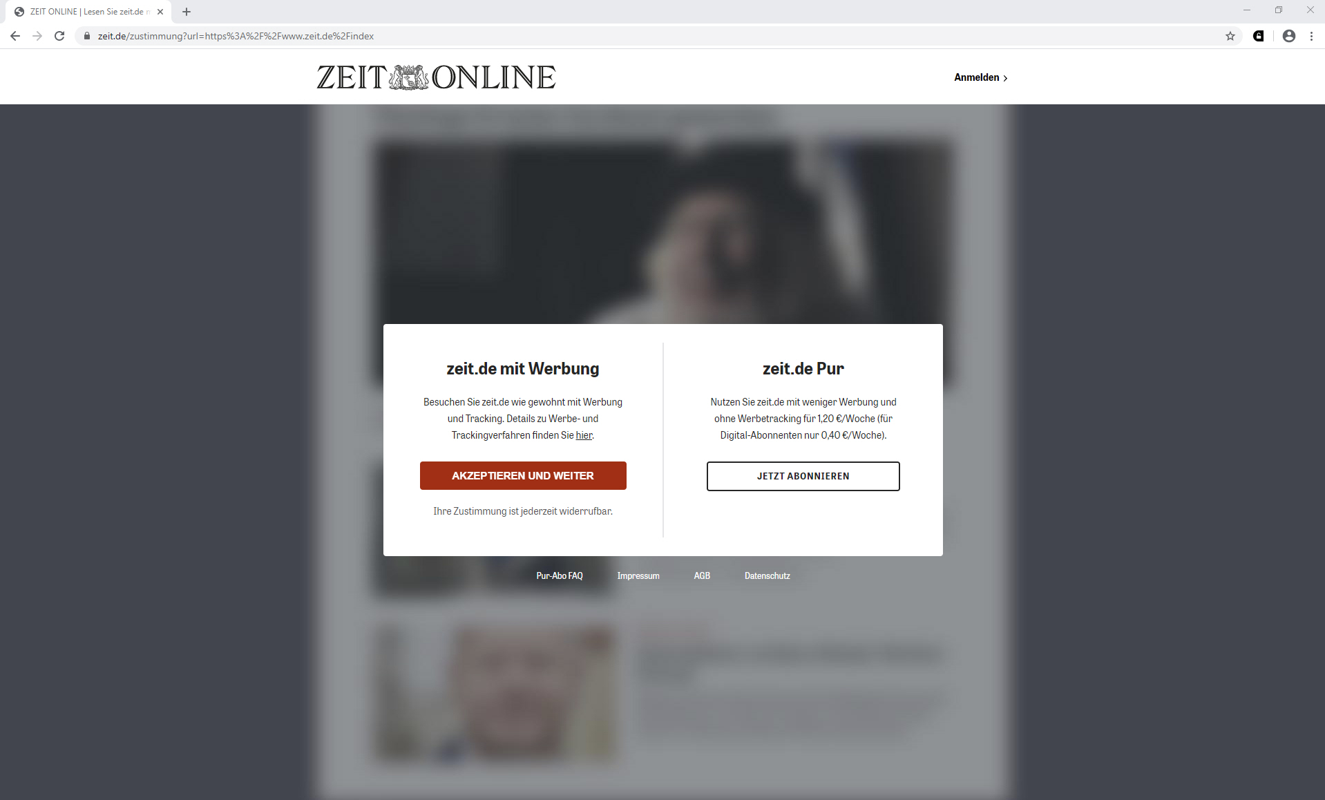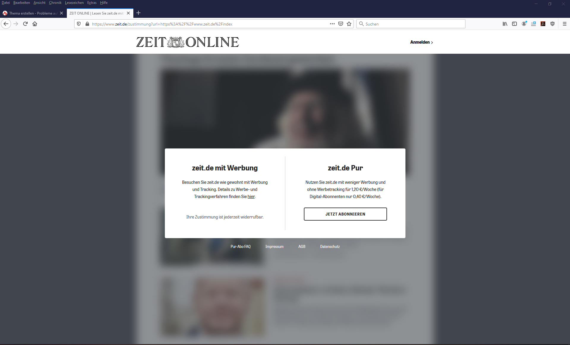 Tatsächlich hat sich das Problem mit der Webseite zeit.de seit einigen Monaten komplett und dauerhaft erledigt, weswegen die Webseite damals wohl ein Problem hatte.