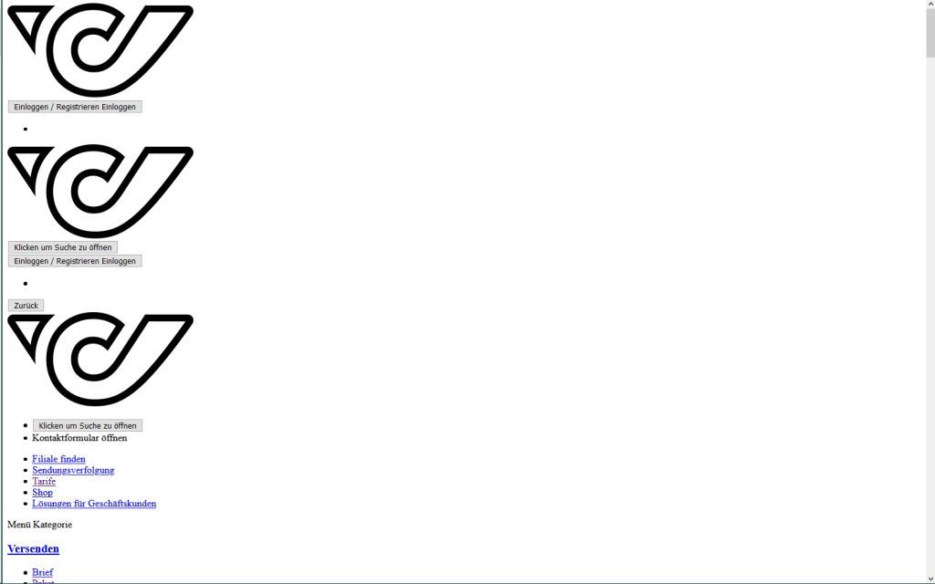 Diese Überraschung brachte mich auf die richtige, browserunabhängige Lösung: meine Firewall blockierte zur Schonung der Bandbreite "nicht wichtige Teile von Webseiten, wie schönere Schriftarten". Kaum habe ich das Häkchen dort entfernt, schon funktionierte die Post-Seite, wie sie soll!