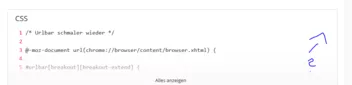 2002Andreas ich weiss nicht so recht, allgemein diese Leiste sieht nicht mehr so aus, wie ich die Adresszeile gewöhnt bin, ich brauch da eigentlich auch keine Suche drin ..weil ich die andere Suchzeile nutze..die von der FF-Startseite ... ich kann auch leider den rest von deiner CSS - Code nicht öffnen, ich klicke auf alles anzeigen und es tut sich null