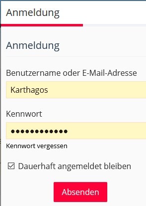 Anmeldedaten sind eingetragen, ich brauche nur noch auf „Absenden“ klicken
