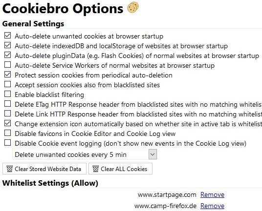So sind die Einstellungen in Cookiebro Options, camp-firefox ist unten eingetragen