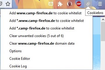 Ich wähle in Cookiesbro „Add http://www.camp-firefox.de to cookie whitelist