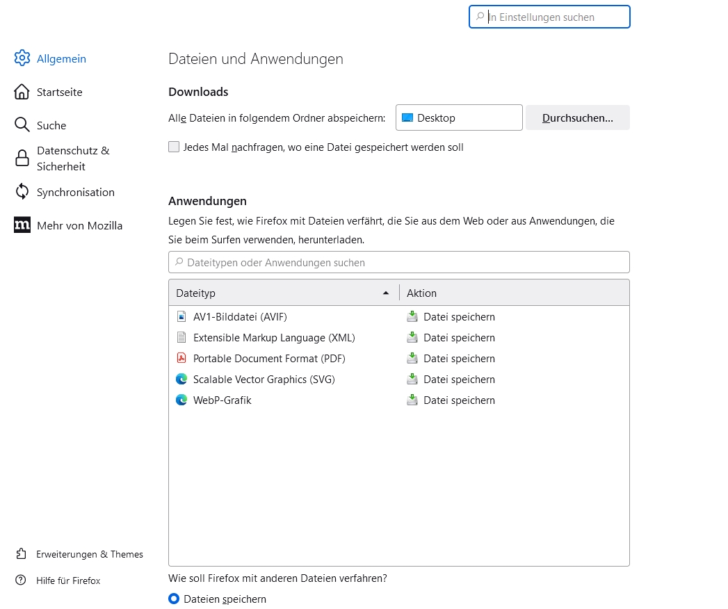 im Anhang sind meine Einstellungen zum Herunterladen von Dateien. Ich kann keine pps-Dateien mehr direkt herunterladen. Diese Funktion hat aber gestern noch funktioniert. Was mach ich falsch und wie kann ich den Fehler beheben?