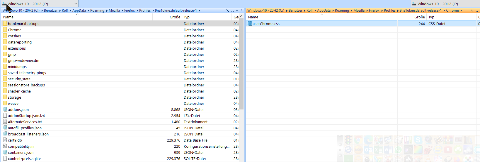 und wenn ich das eingebe sehe ich den Profilordner, über den ich schon immer spreche.