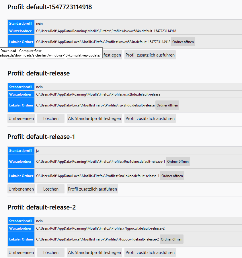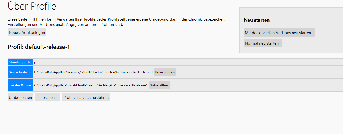 In der about:profiles ist weiterhin nur 1 Profil.