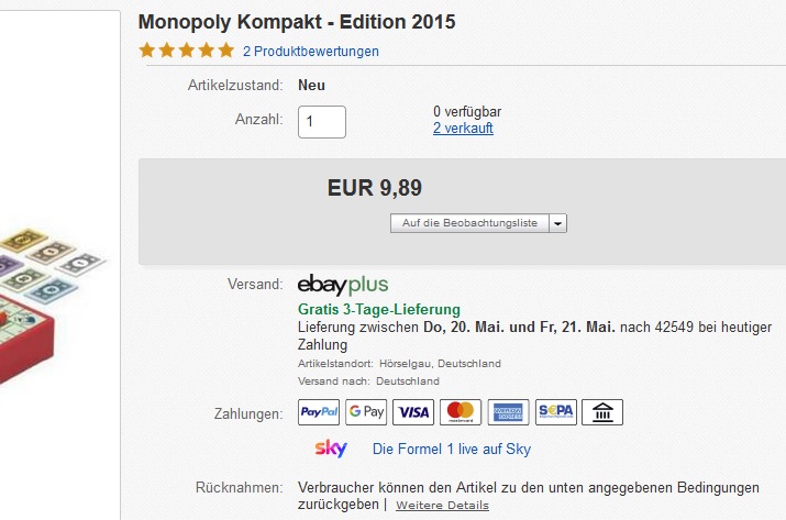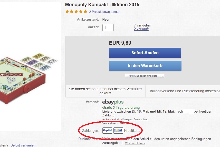 Seit einigen Tagen vermisse ich bei ebay die Möglichkeit zu erkennen welche Zahlungsmöglichkeiten beim Kauf von Artikeln zur Verfügung stehen.