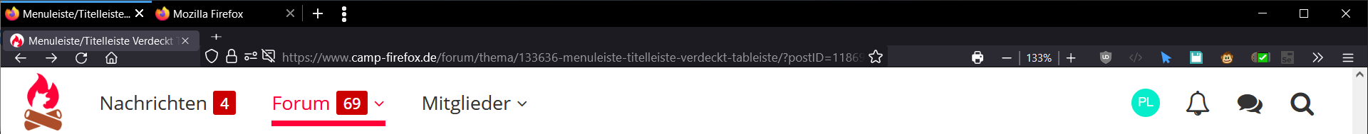 Nur wenn ich unter "Anpassen" die Menuleiste (oder die Titelleiste) aktiviere, wird mir dafür die Tableiste ausgeblendet und ich habe keien Tabs mehr. Wie kann ich das so machen, dass ich wie früher mal eine Tableiste habe und eine Menuleiste? (ich will die Tabs überhalb vom Adressfeld haben und nicht neben meinen Add-Ons)