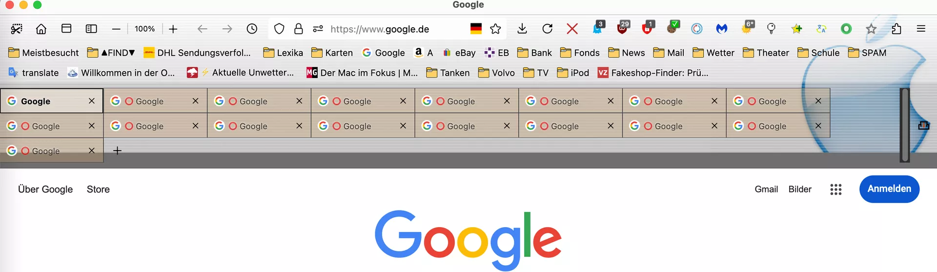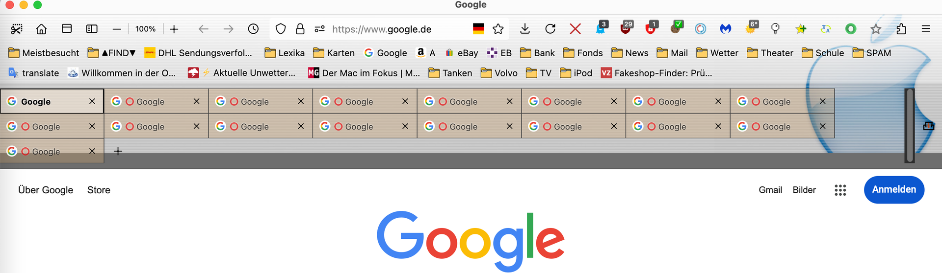 Die Frage mit dem schwarzem Balken ist mit diesen Erläuterungen verständlich, aber mein Problem ist der schwarze Balken, der sich quer von links nach rechts dann bildet, wenn man die 3. Zeile von der Tableiste benötigt.