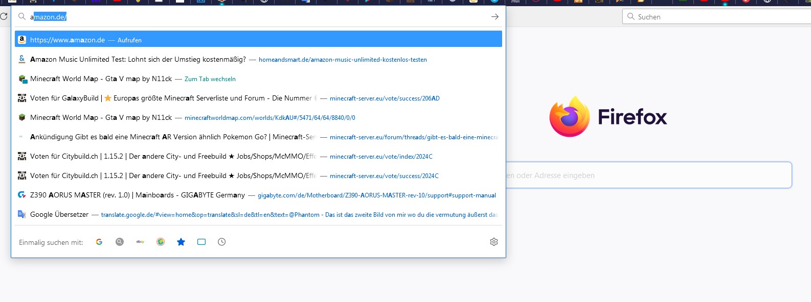 Jedes Mal, wenn ich etwas suchen möchte, öffnet sich bei erster Eingabe die Adressleiste.