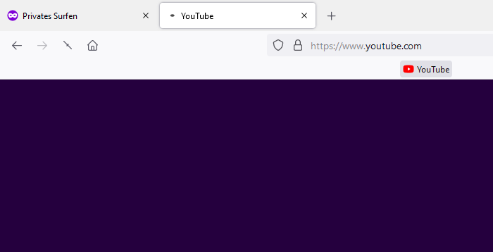 In dem Tab wurde zuvor noch nichts geöffnet, doch bevor YouTube geladen wird, erscheint das violett.
