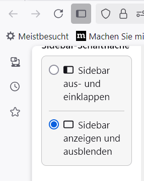 Und dann bei: Sidebar-Schaltfläche den unteren Eintrag: Sidebar anzeigen und ausblenden aktivieren