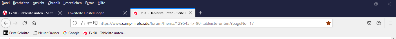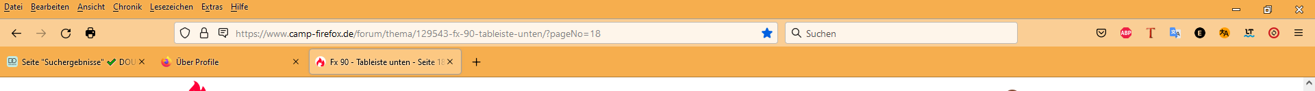 Ich habe hier am PC die 88er Version noch drauf. Würde aber schon ganz gerne das Update machen. Wollte vorher am Laptop testen, wie ich den FF in das alte Design zurückversetzen kann. So wie das immer möglich war. Dass es nun doch nicht funktioniert, hätte ich nicht erwartet. Ich bin zwar kein Profi, aber das habe ich bisher immer hinbekommen. Am PC sind meine Tabs unterhalb der Adressleiste, wo ich sie gerne mag.