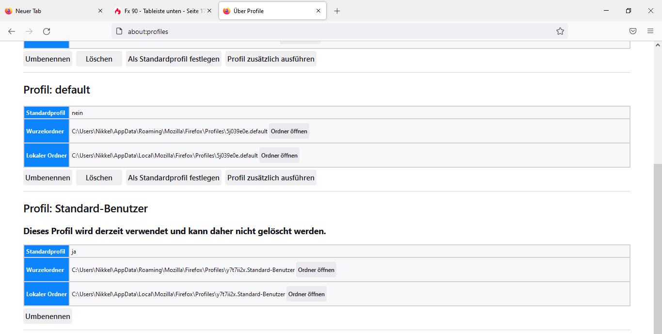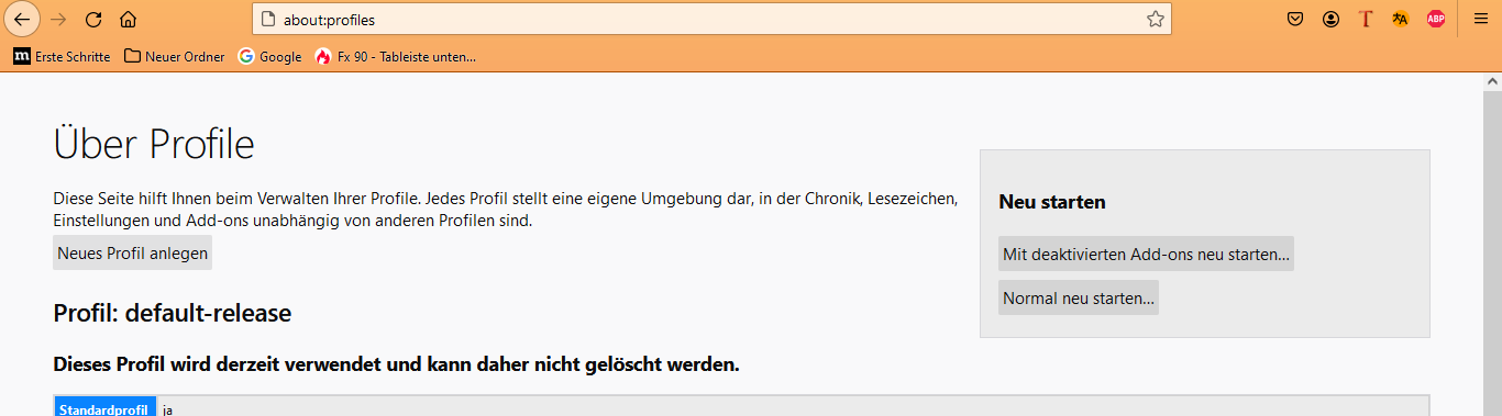 Inzwischen in beiden. Das default-release ist mein eigentliches Profil. Dann sollte ich ein neues Profil anlegen. Da habe ich dann die Einstellungen vorgenommen. Es klappt aber bei beiden nicht. Hatte die css in beide reingemacht, falls es daran gelegen haben könnte.