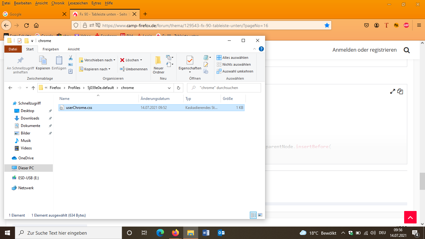 erstmal oute ich mich als Nicht-Profi. Ich bekomme das sonst mit den userchrome.css dateien hin die Tabs wieder nach unten zu holen. Aber egal was ich ausprobiere von den hier angezeigten, meine neueste FF Version übernimmt es einfach nicht. Gibt es für die Version 89.0.2 (32-Bit) womöglich einen anderen Code?