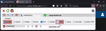 Testweise hab ich's mal mit NoScript versucht und konnte gleiches Verhalten beobachten. Lösung brachte hier das Deaktivieren von "fetch".