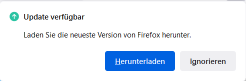 ich kriege mehrmals täglich die Meldung im Screenshot. Ich dachte erst, es wäre ein Virus, aber wenn ich auf Herunterladen gehe, komme ich auf die offizielle Firefoxseite https://www.mozilla.org/de/firefox/new/.