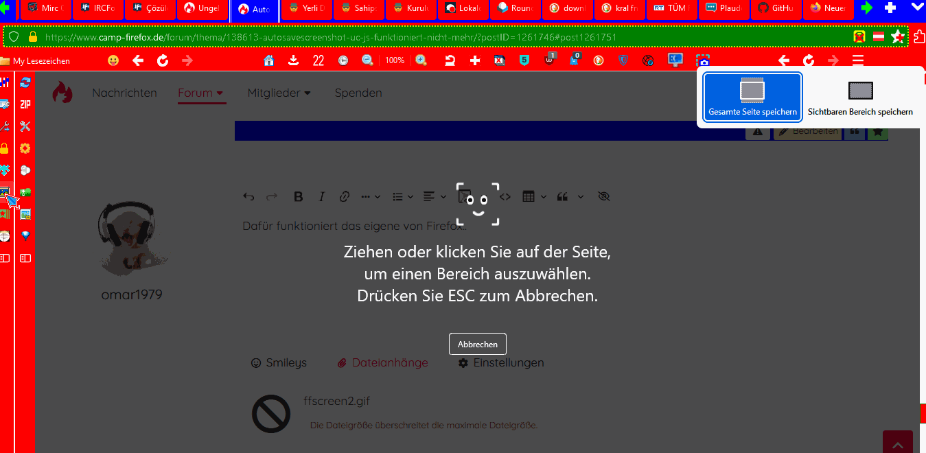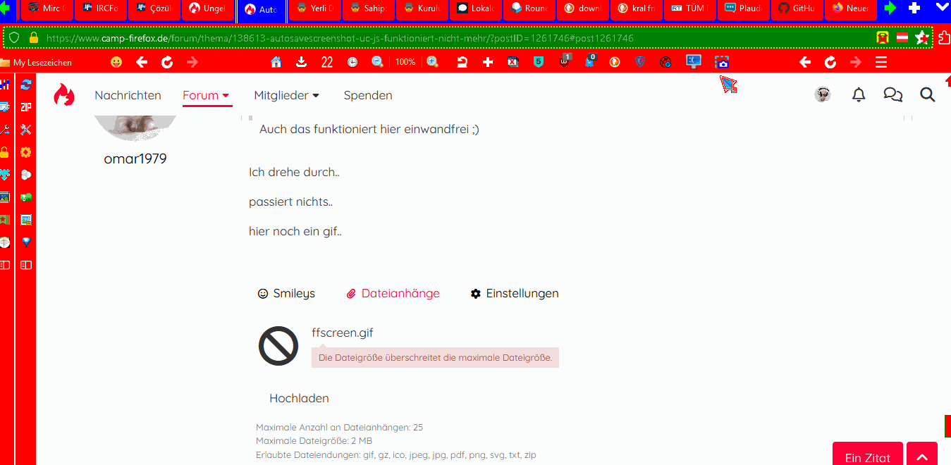 Wie gesagt, nur das letzte mal dann hat es wieder funktioniert. Heute wollt ich nochmals testen funktionierte nicht mehr. Aber ich habe auch schon lange nichts an FF geändert..