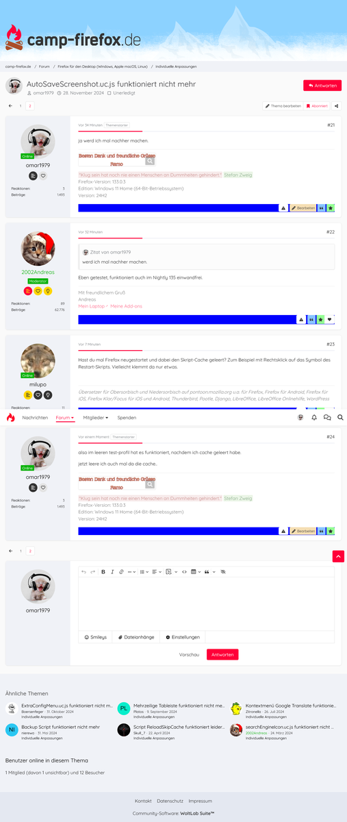 Also nur erstmal beide Skripte neu einfügen..Cache löschen beim Neustart vom Firefox.