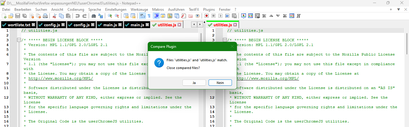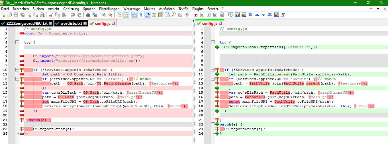 habe jetzt die anpassungs-dateien verglichen und sieht so aus..
