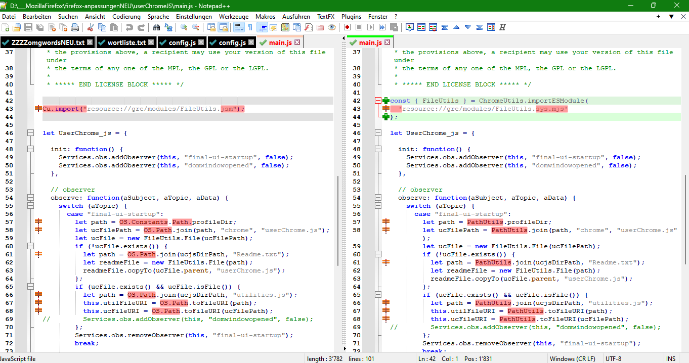 Aber ich finde es komisch, dass die alten Anpassungen noch mit FF-version 130.0 funktionierten.
