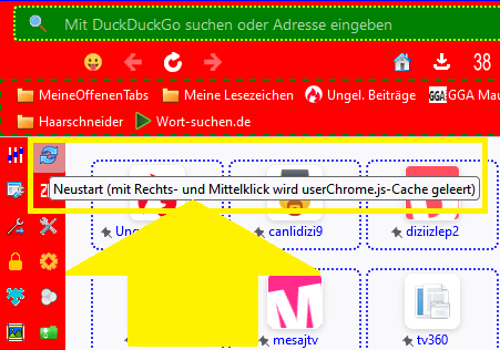 Heisst das: mit Links-Klick wird nur der FF neugestartet (Cache wird dabei nich geleert)?