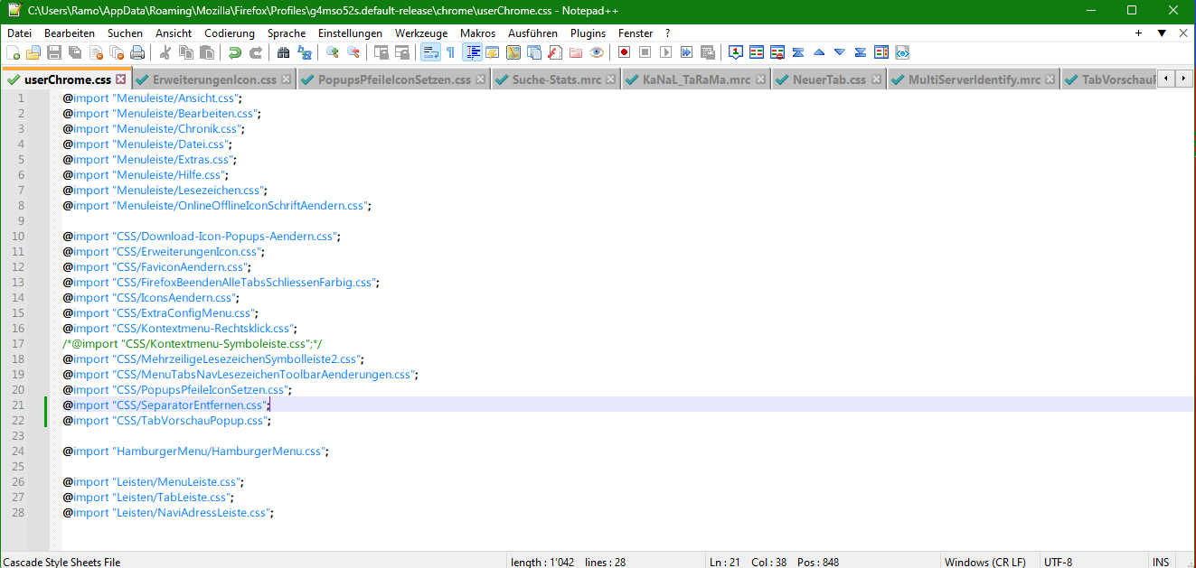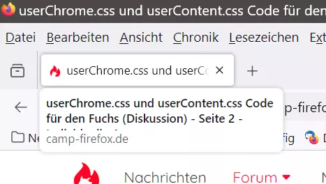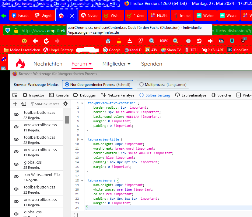 hab gerade diese Code getestet, im userChrome.css @import "CSS/TabVorschauPopup.css"; eingefügt und FF neugestartet.. Funktioniert nicht, alles beim Alten.