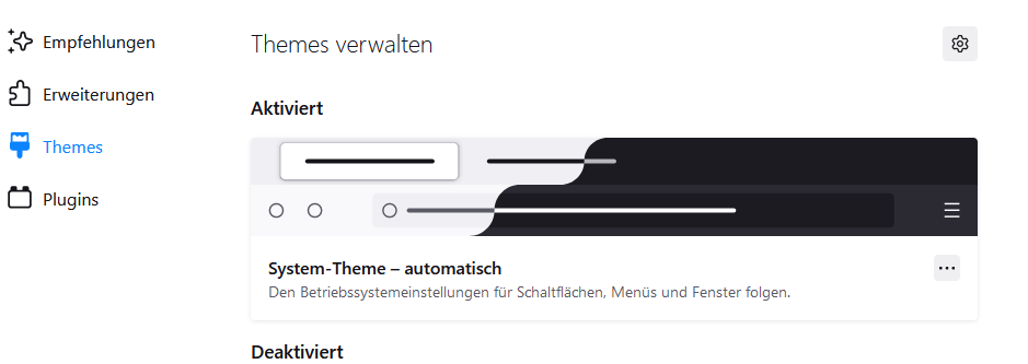 Finde es merkwürdig...zumal es in den Einstellungen dann das Firefox Theme und das Systeme Theme gibt. Soll es da einen Unterschied geben? Im Menü Add-ons gibt es auch kein Firefox Theme sondern normal das Systeme Theme..verwirrend.