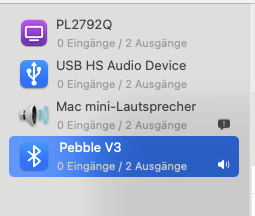 Creative Pebble V3 ist für die 'Normale' Tonausgabe zuständig, Systemmeldungen leite ich auf den MacMini Lautsprecher um.