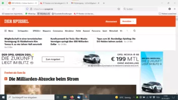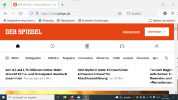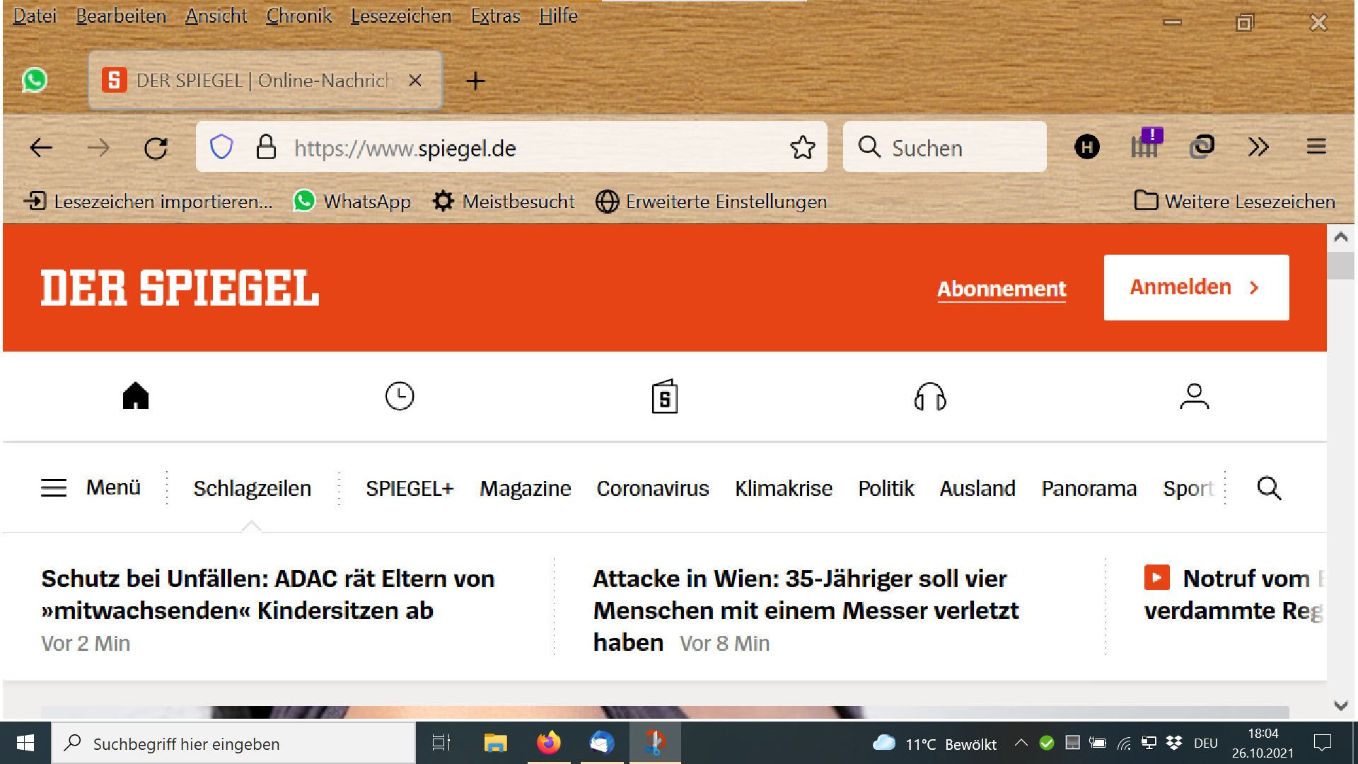 Einmal wurde Spiegel wieder zu groß dargestellt, danach habe ich es noch 2 mal durchgeführt und die Seiten wurden korrekt dargestellt, geöffnet waren WhatsApp, Spiegel, Camp-Firefox und Google.