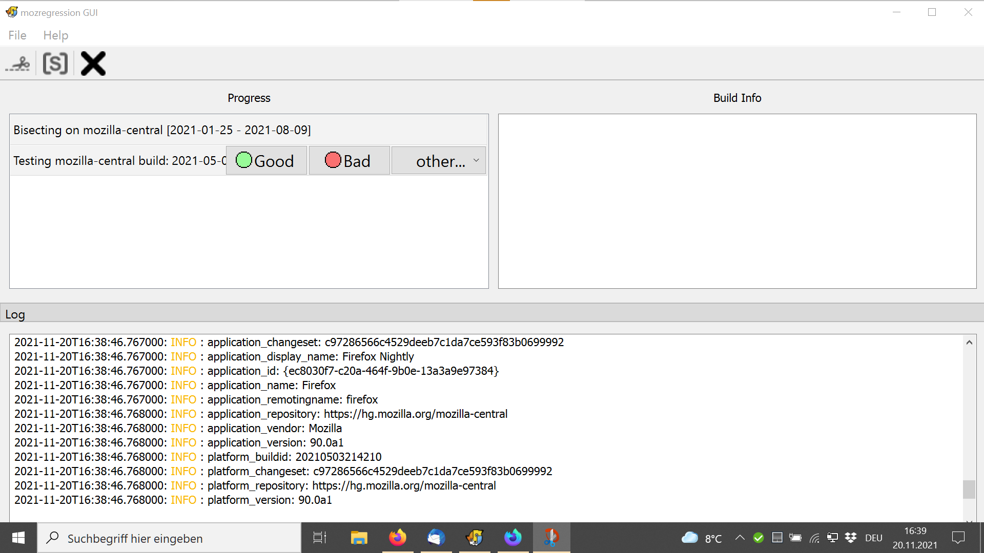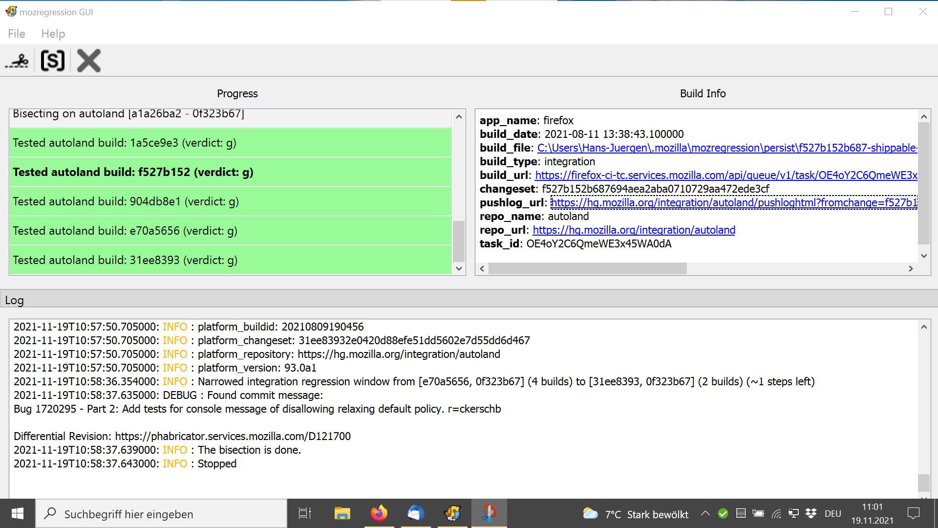 Werde als nächstes noch das von Mozregression ausprobieren.