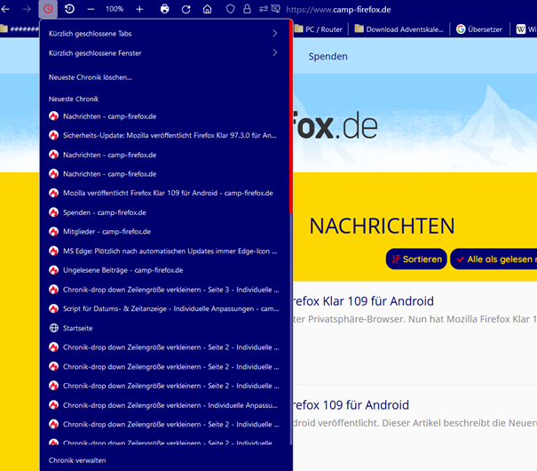 Ja, ich meine die Chronik oben in der Menüleiste.
