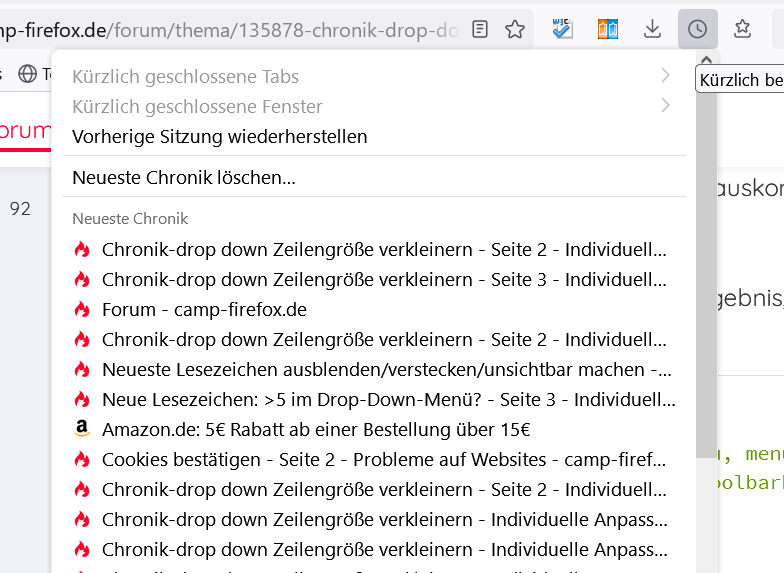 Ich hatte einfach nicht auf dem Schirm, dass es in der Leiste ganz oben auch noch einen Reiter "Chronik" gibt (hab die immer eingeklappt).