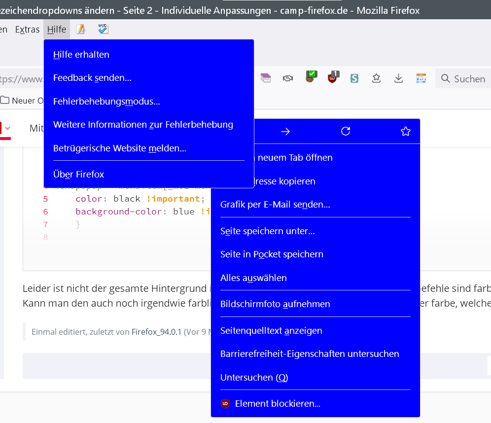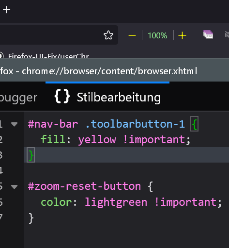 Und zwar habe ich die url Leiste, die Menüleiste, in der sich diese befindet und die Tableiste in der selben Farbe eingefärbt.